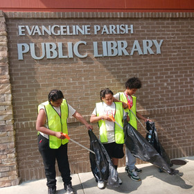 Our adventurers always look for a way to give back to the community. Ethan Zang (EZ), Roderick Williams, and Quintarus Williams took time out to help the library staff keep the grounds clean.